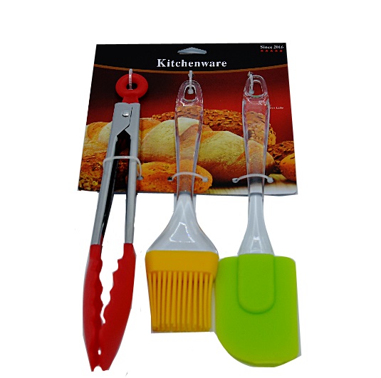 RM-052 Набор аксессуаров для кухни 3пр.щипцы(пластик+нерж.сталь),лопатка,кисточка (силикон+пластик)