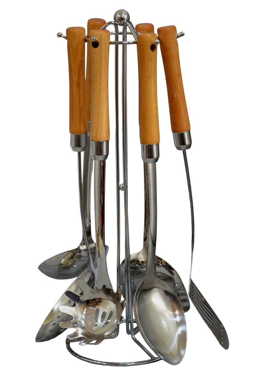 Набор аксессуаров для кухни RM-1924 7пр.Нержавеющая сталь.В наборе шумовка,половник,лопатка шумовка,лопатка,большая ложка,ложка для спагетти (24)