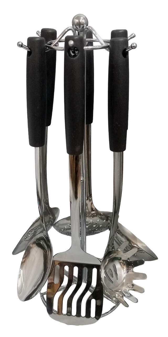 Набор аксессуаров для кухни RM-1925 7пр.Нержавеющая сталь.В наборе шумовка,половник,лопатка шумовка,лопатка,большая ложка,ложка для спагетти (24)