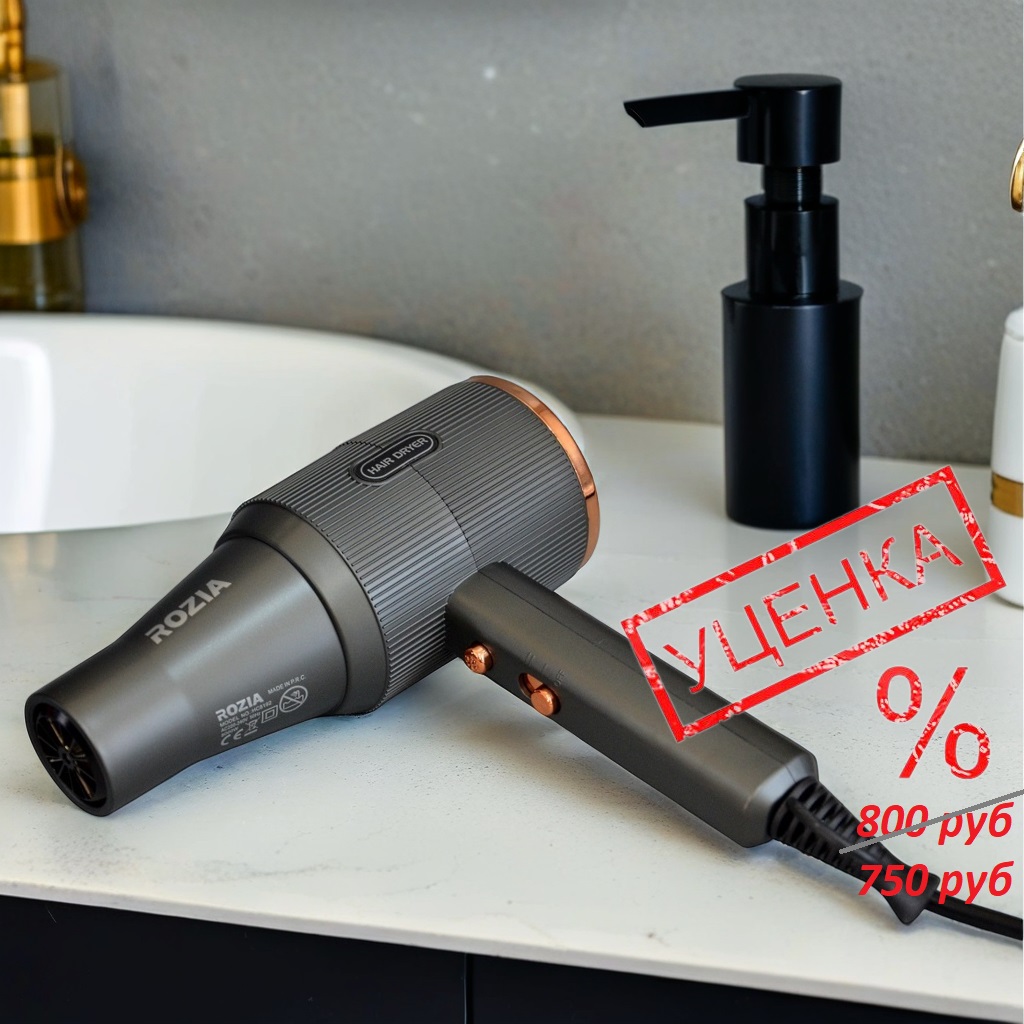 УЦ7854 Фен ROZIA НС-8192 нет насадки.Мощность 1600Вт.2 скорости,функция режим"холодный воздух".Шнур 1,9м
