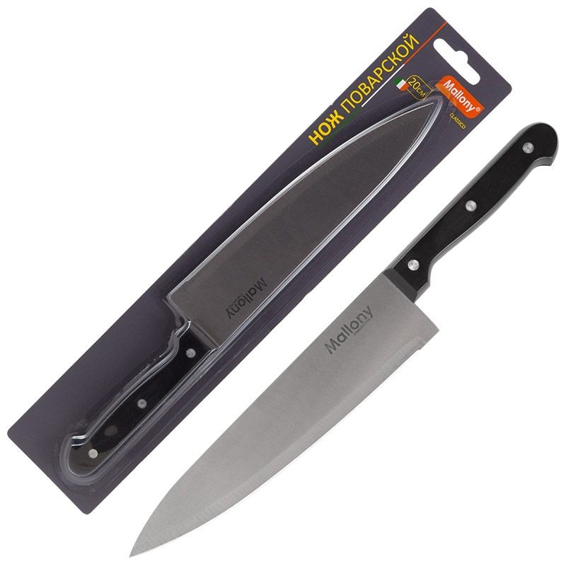 Нож с пластиковой рукояткой CLASSICO MAL-01CL поварской,20см,т.м. Mallony.Нержавеющая сталь,пластмасса.Толщина стали 1,5мм
