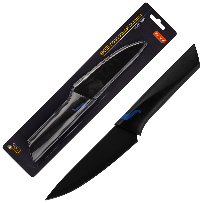 Нож с пластиковой рукояткой VOLTURNO поварской малый.Длина лезвия 13,7см.Толщина лезвия 1,5мм.Материал нержавеющая сталь (3CR13),полипропилен