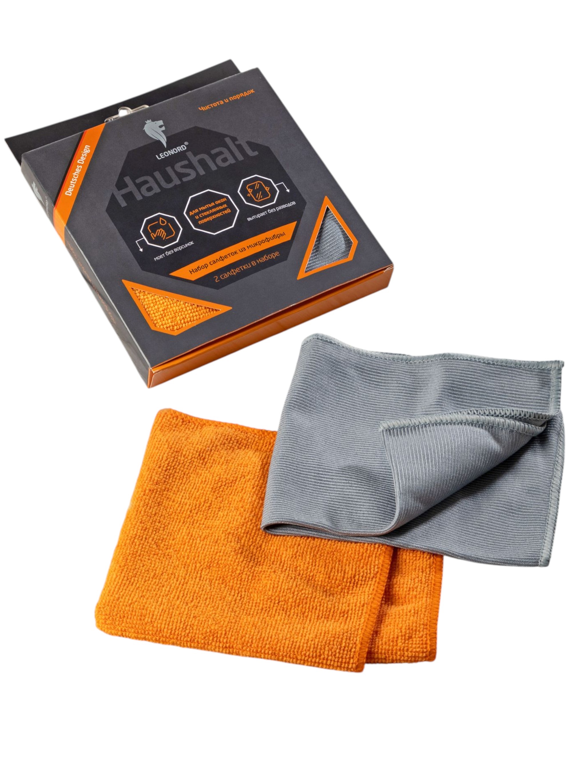 Набор салфеток из микрофибры 2шт для мытья окон Leonord.Размер 30*30см.Салфетки разной текстуры (10)