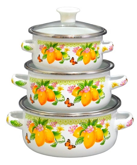 Набор кастрюль RM-1366 эмаль 6пр.Объем 400мл,800мл,1000мл,диаметр 12/14/16см