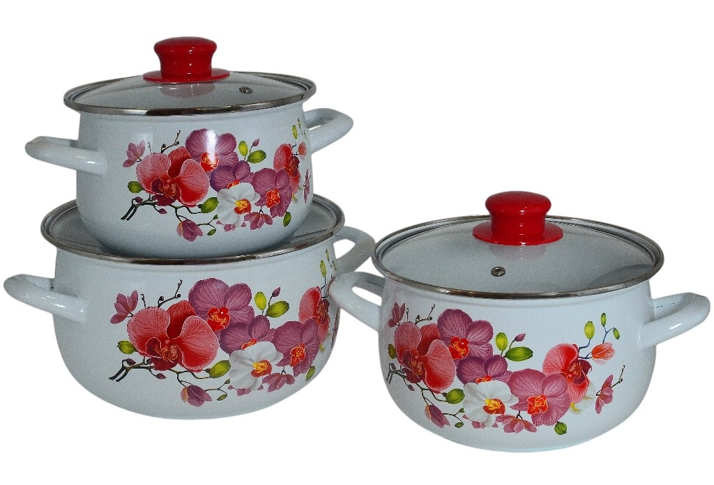 Набор кастрюль эмаль RM-1868 6пр.Объем 1,8л,2,8л,3,8л.Диаметр 18см,20см,22см (6)
