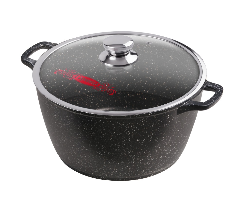 Кастрюля 8л. 300/150 Гранит лит/руч. с/кр к303аг.Толщина дна 6мм,стенок 4мм,высота 17см (4)