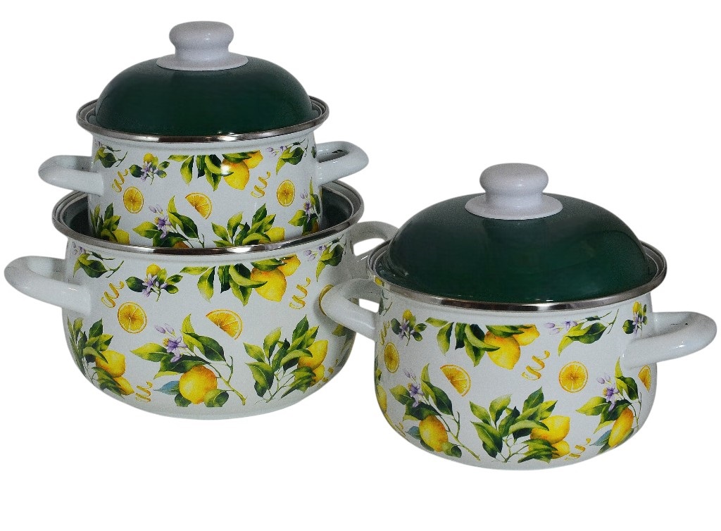 Набор кастрюль эмаль RM-2169 6 пр.Объем 1,5л,2,2л,3,2л.Диаметр 16см,18см,20см (6)