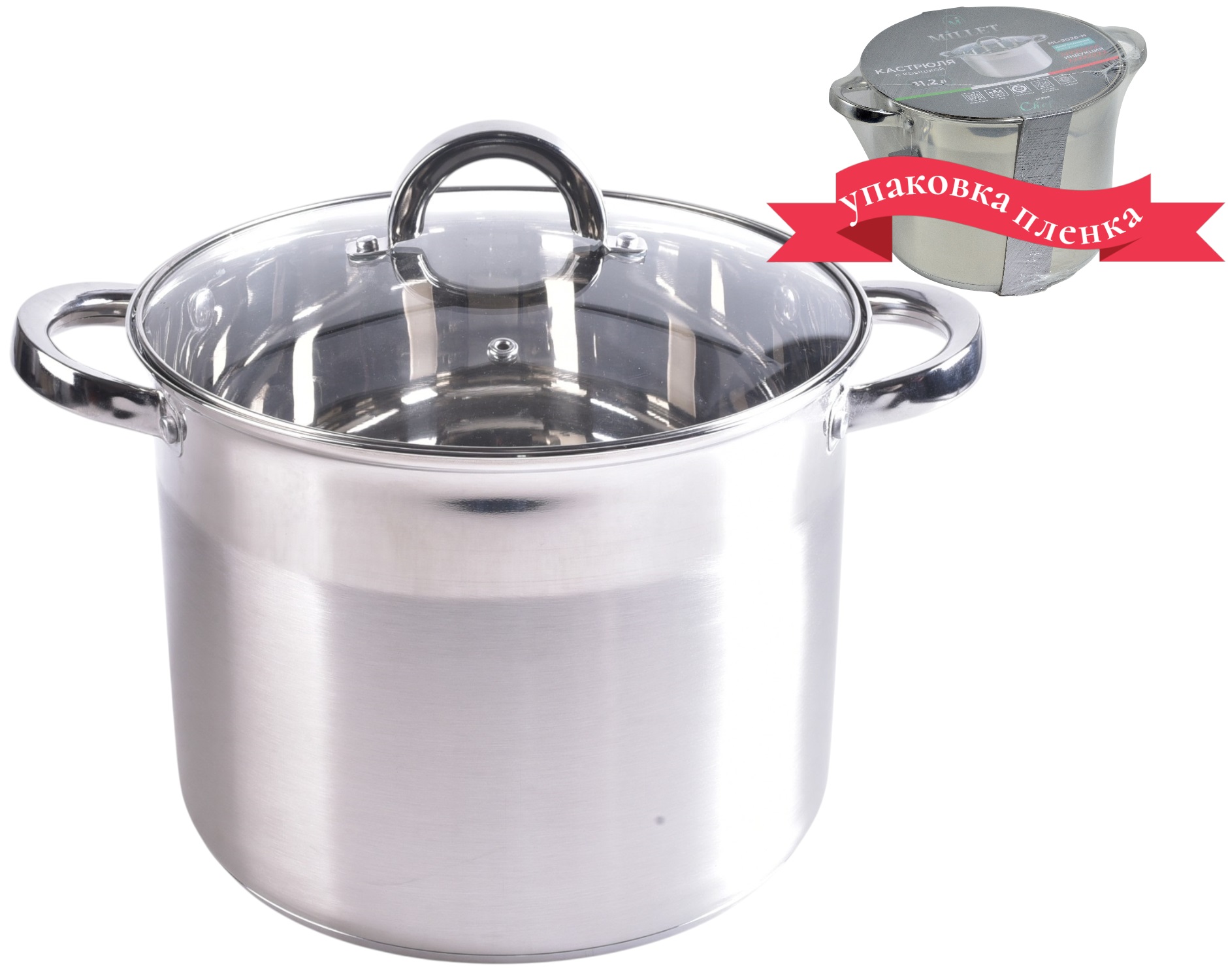 Индукция.Объем 11,2л.Размер 26*21см.Толщина 0,5мм.Высококачественная нержавеющая сталь.Упаковка - цветной картонный вкладыш, термоусадка (крышка в перевернутом виде внутрь кастрюли) (6)