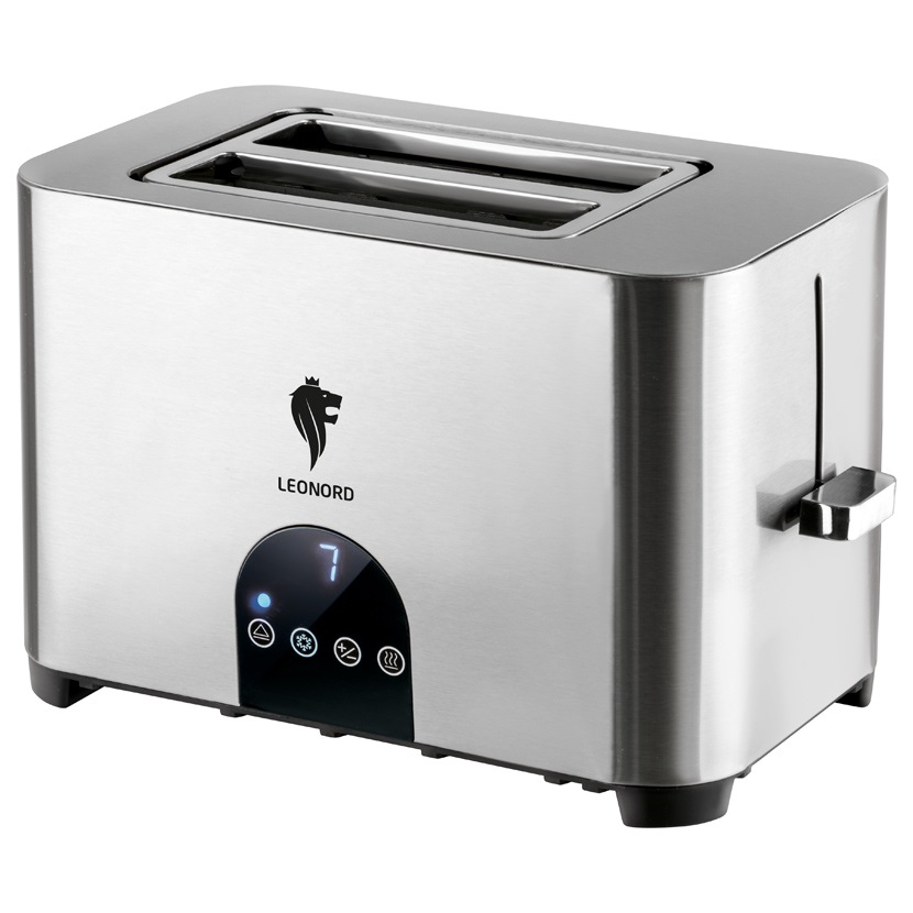 Тостер Leonord LE-1731D.Мощность 750-850Вт.7 степеней прожарки.2 широких слота для хлеба.Место хранения шнура.Поддон для крошек.Ручная установка времени.Автоматический подъем готового хлеба.Функция разморозки.Функция подогрева.Металлический корпус.LED Дисплей (6)