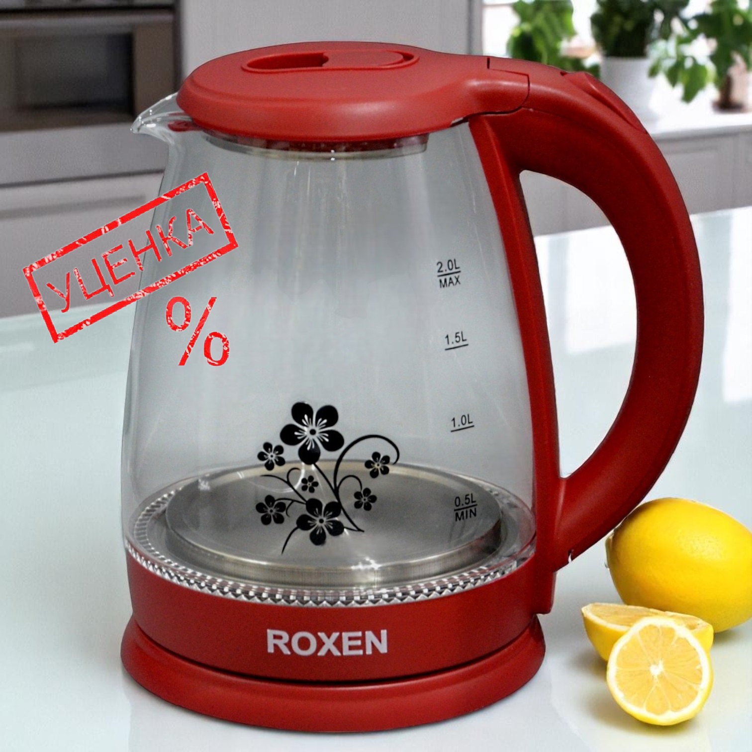 УЦ7444 Чайник электрический ROXEN RX-7025 Red 2000Вт. 2 л царапины ,потертости.Корпус из термостойкого стекла.Автоотключение при закипании.Возможность поворота на подставке на 360*.Закрытый нагревательный элемент из нержавеющей стали.Световой индикатор работы