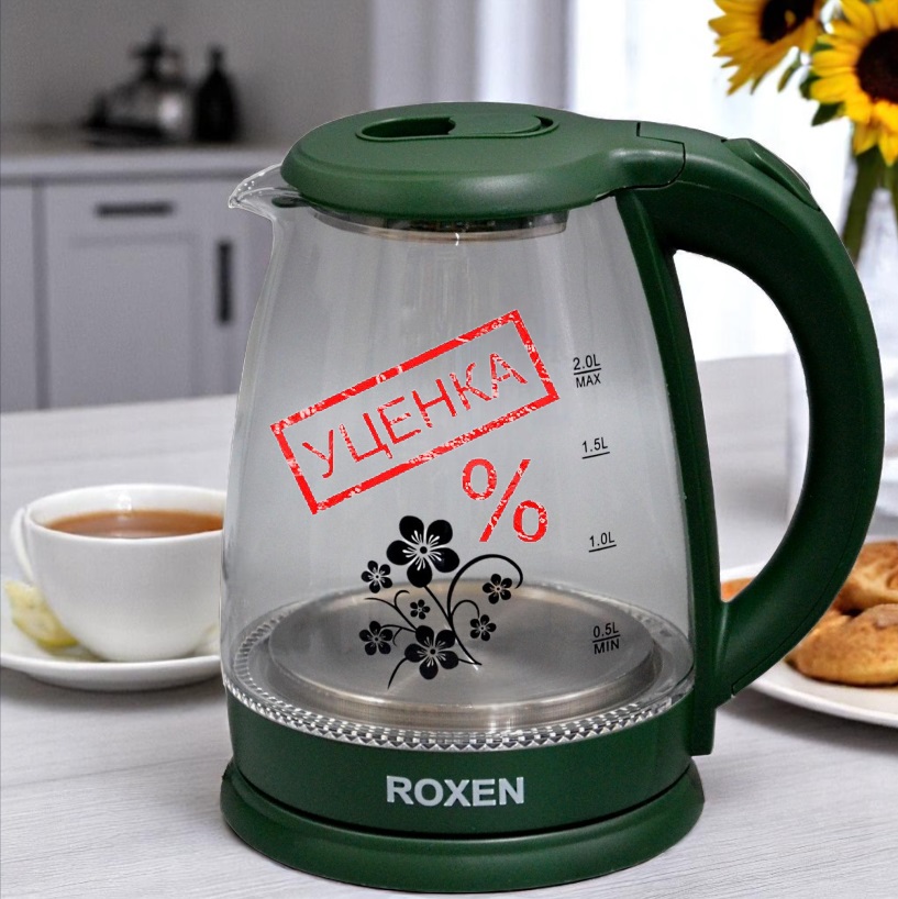 УЦ6284 Чайник электрический ROXEN RX-7025 Green 2000Вт. 2 л царапины ,потертости.Корпус из термостойкого стекла.Автоотключение при закипании.Возможность поворота на подставке на 360*.Закрытый нагревательный элемент из нержавеющей стали.Световой индикатор работы