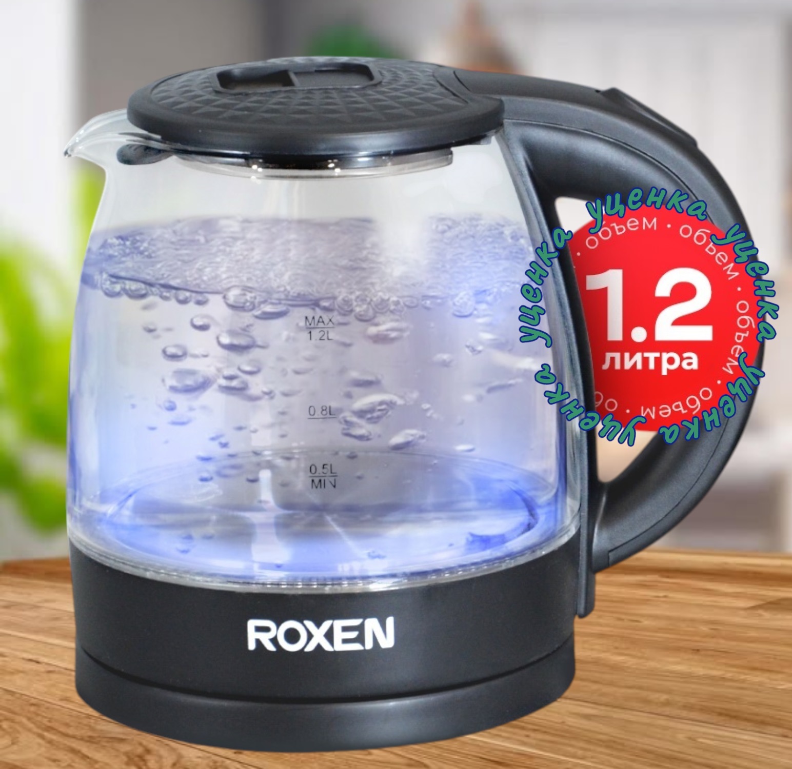 Мощность 1500Вт.Объем 1,2л.Корпус из термостойкого стекла.Автоотключение при закипании.Возможность поворота на подставке на 360*.Закрытый нагревательный элемент из нержавеющей стали.Световой индикатор работы (12)