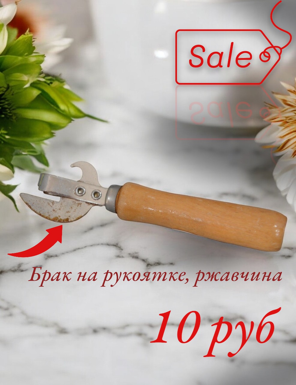 УЦ3131 Консервный нож RM-173 брак на рукоятке,ржавчина.Нержавеющая сталь,дерево, длинна 15.5см