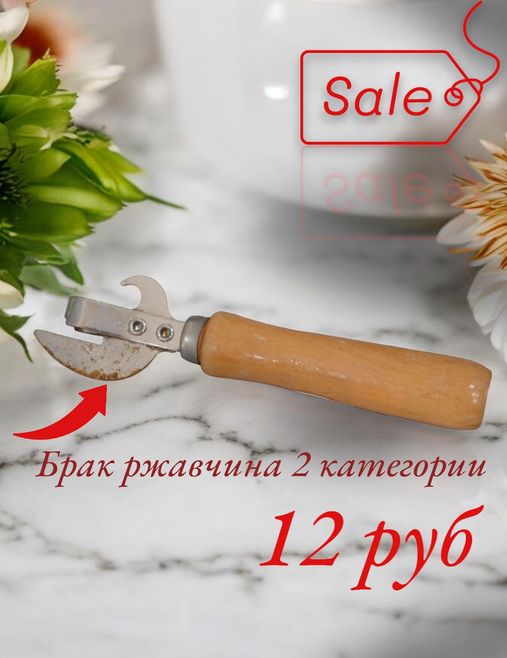 УЦ3132 Консервный нож RM-173 ржавчина 2 категория.Нержавеющая сталь,дерево, длинна 15.5см