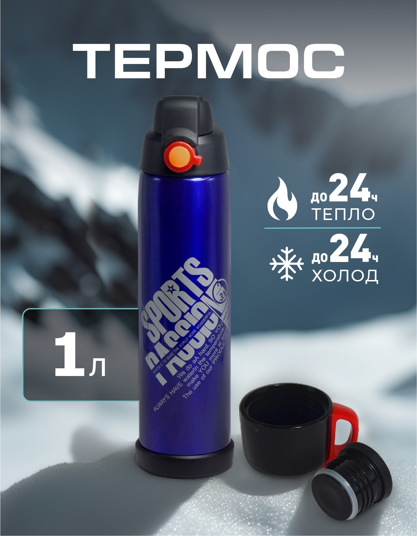 Термос 5023/1 SPORT Синий.Объём 1л.Без клапана.Нержавеющая сталь SUS 304 (40)