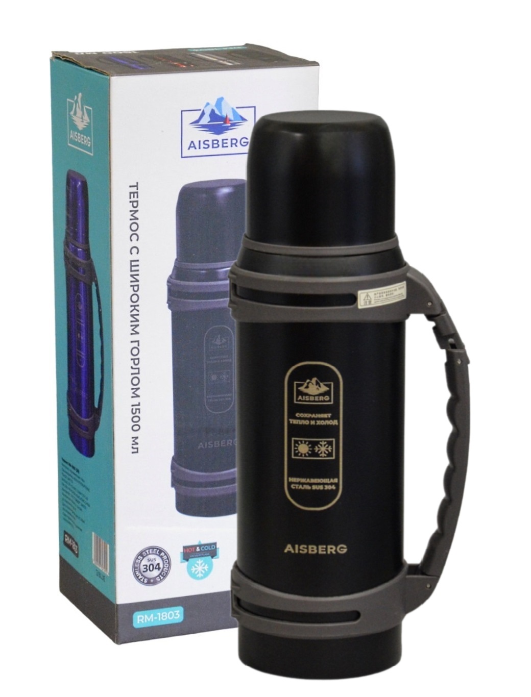 Термос AISBERG RM-1803 Черный.Объем 1,5л.Нержавеющая сталь SUS 304.С клапаном (30)