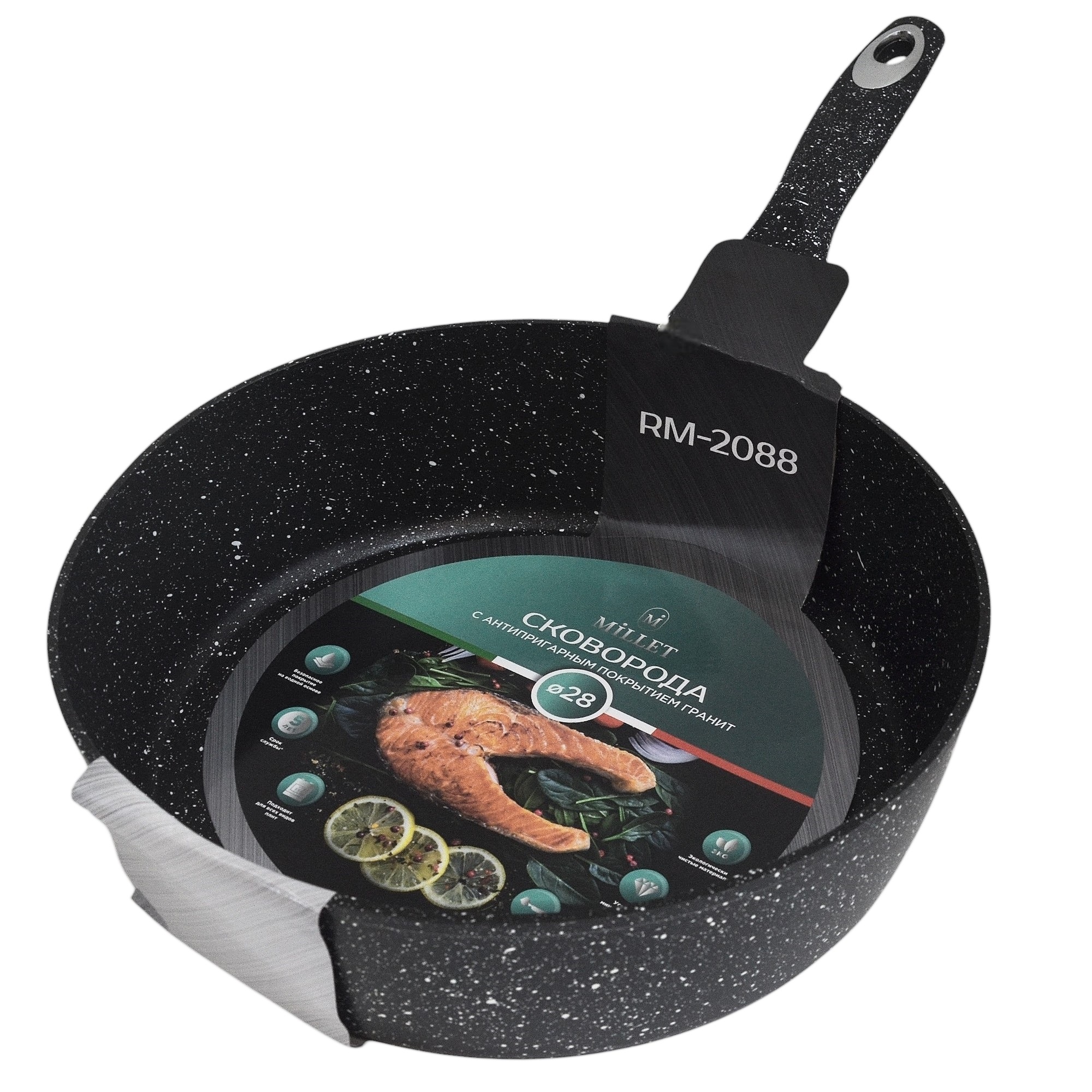 Индукция.Диаметр 28см,высота 8см.Многослойное антипригарное покрытие PFLUON.Бакелитовая ручка с покрытием Soft Touch (8)