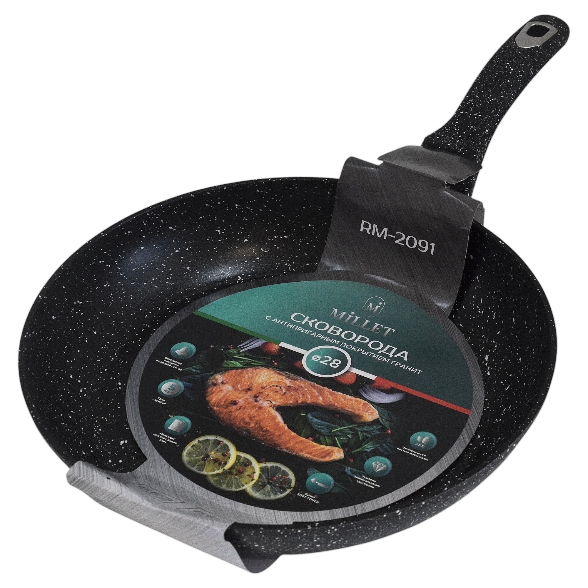 Индукция.Диаметр 28см,высота 5,5см.Многослойное антипригарное покрытие PFLUON.Бакелитовая ручка с покрытием Soft Touch (12)