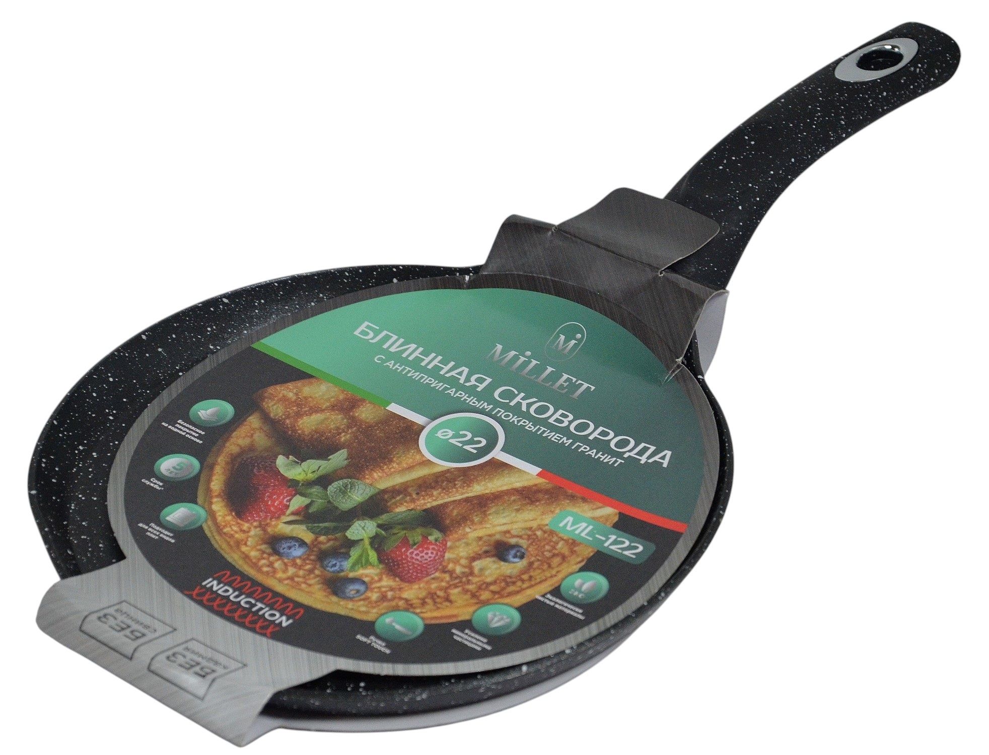 Индукция.Диаметр 22см,высота 1,5см.2-х слойное антипригарное покрытие Гранит.Бакелитовая ручка с покрытием Soft Touch (6)