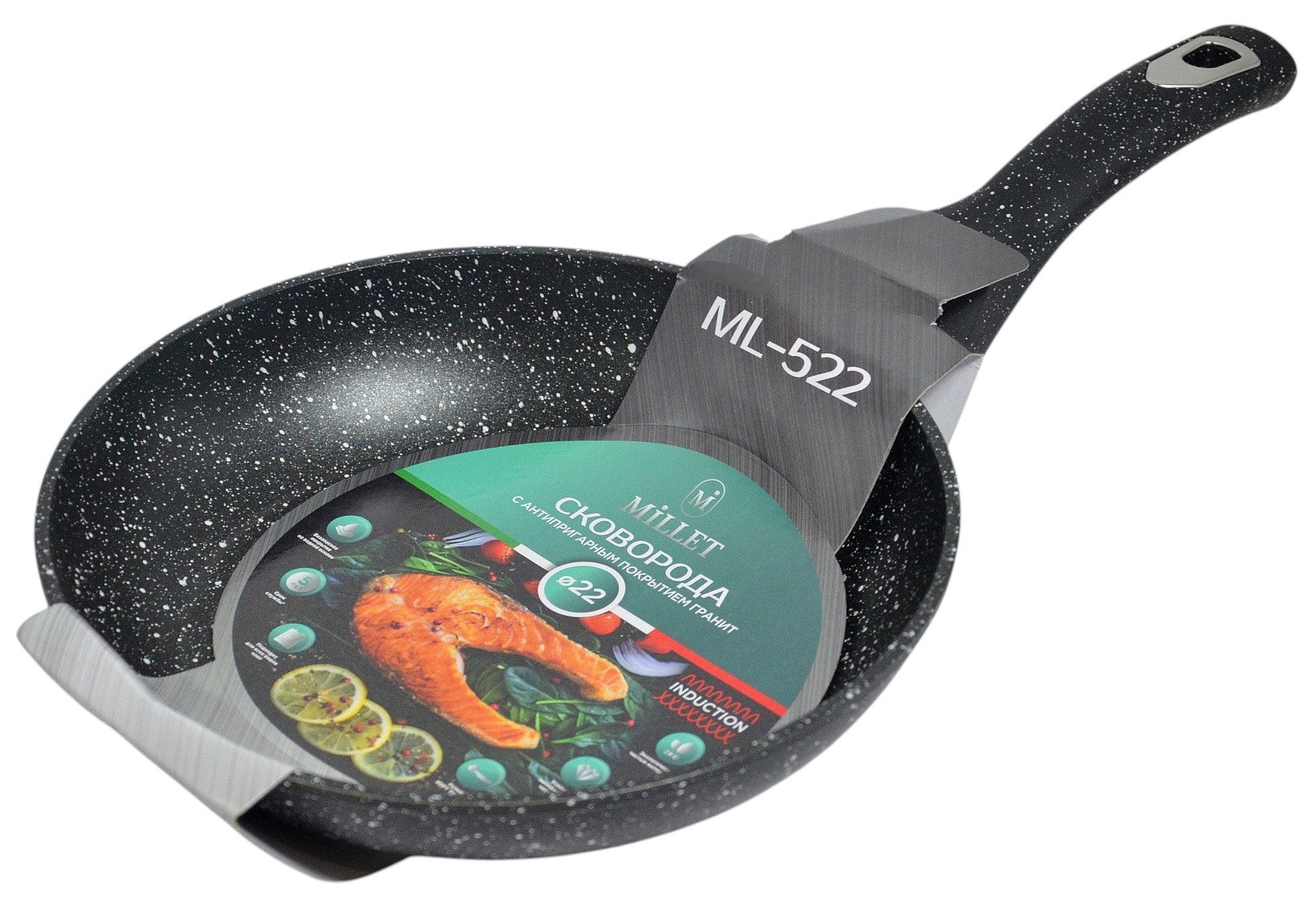 Индукция.Диаметр 22см,высота 5см.Бакелитовая ручка с покрытием Soft Touch.Многослойное антипригарное покрытие PFLUON (12)