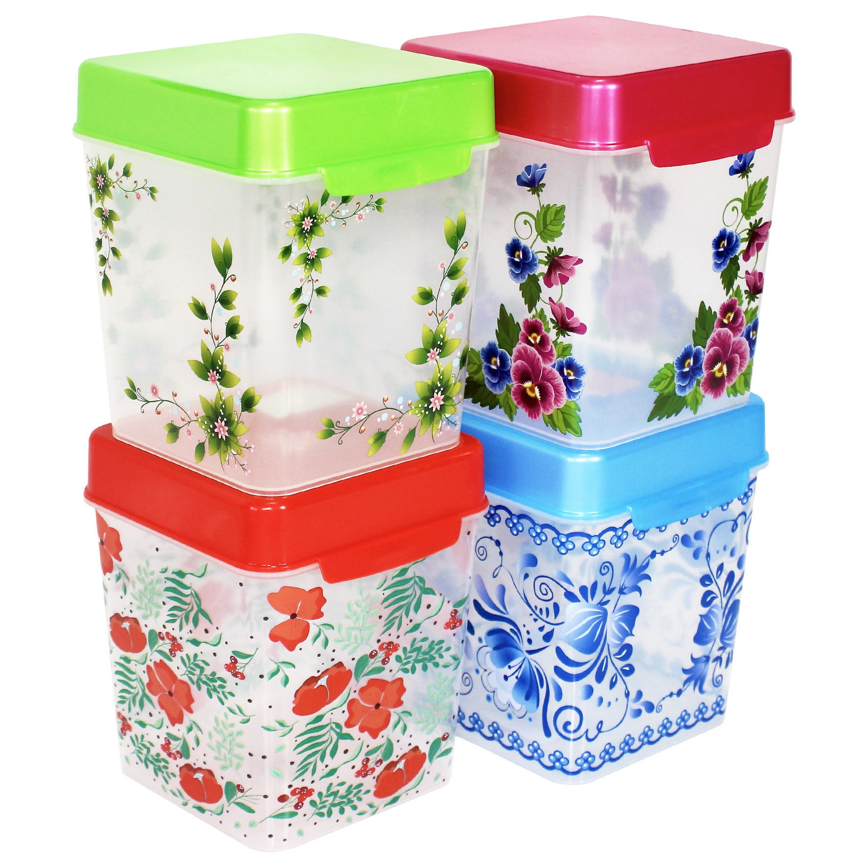 Контейнер для сыпучих продуктов 05221.Объем 1,3л.Высота 14см,размер 12,5*10см.В ассортименте (30)