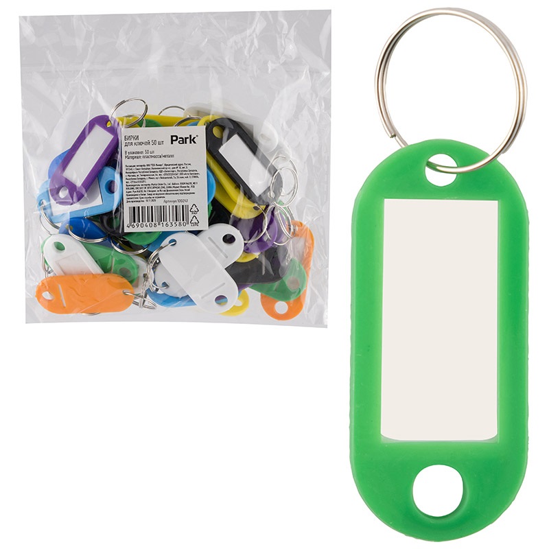 Бирка для ключей 50шт.Размер 4,8х2,2см.Пластик,металл (100)