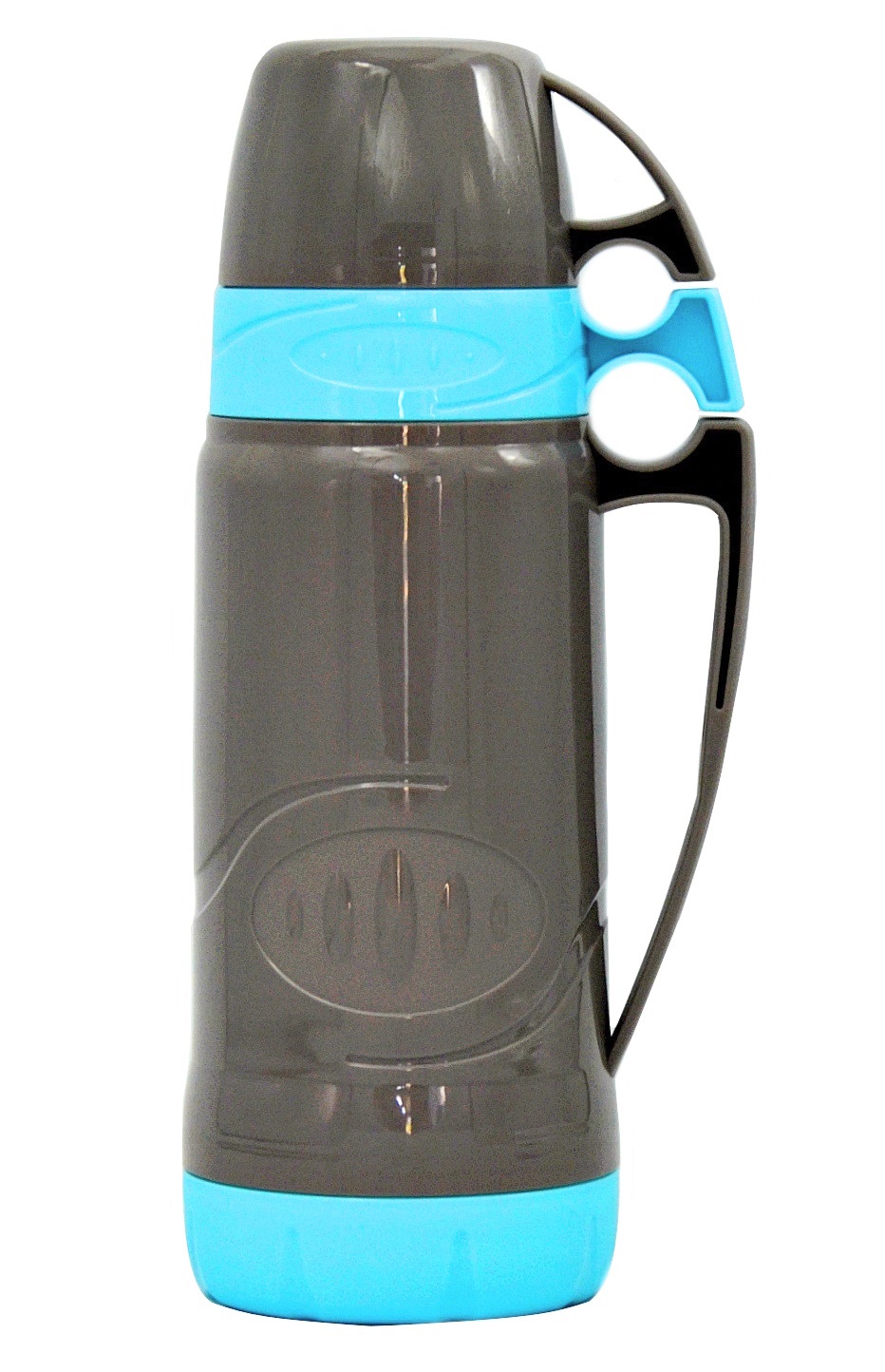 Термос RM/АВ-1000 Голубой.Объём 1л.Корпус пластик,колба стекло.2 кружки.Без клапана, узкое горло