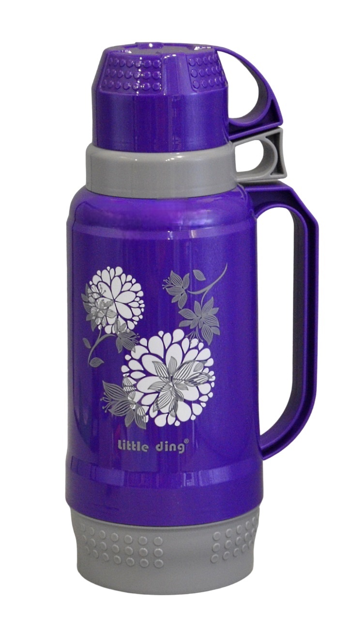 Термос 79T100 Фиолетовый.Объем 1л.Объём 1л.Корпус пластик,колба стекло,2 кружки (12)