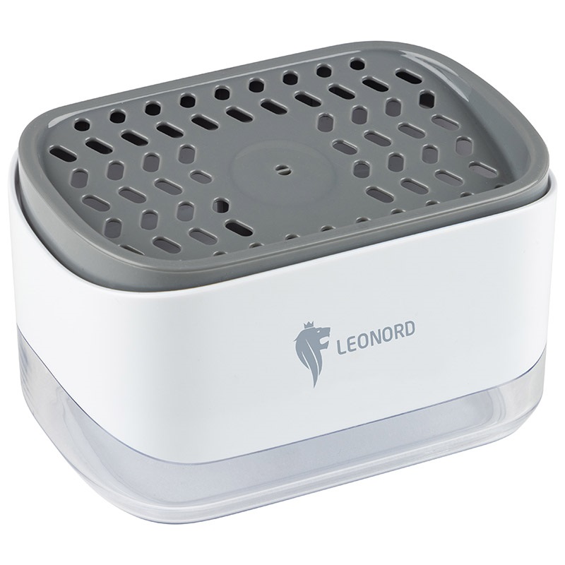 Диспенсер для моющего средства SAUBER нажимной, с держателем для губки.Размер14*10*8,5см.Объем 300мл.Уникальный ручной диспенсер для моющего средства и одновременно место для хранения губки.При нажатии на губку, расположенную на подставке в верхней части диспенсера,моющее средство поднимается из резервуара и попадает прямо на губку.Оптимальная дозировка позволит сэкономить на расходе моющего средства.Противоскользящее основание.Материал АБС пластмасса, ТПР, полипропилен, нержавеющая сталь.Вес 180гр (24)