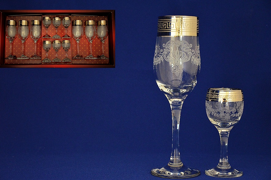 Набор 12 предметов бокал/рюмка 160/134 Барокко.Объём 200мл,60мл,высота 20,5см,11,2см.Материал стекло.Обработка золотое напыление, гравировка