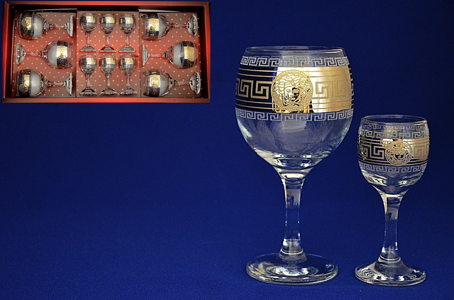 Набор 12 предметов фужер/рюмка 411/134 Версаль.Объём 29мл,60мл,высота 16см,11,2см.Материал стекло.Обработка золотое напыление, гравировка