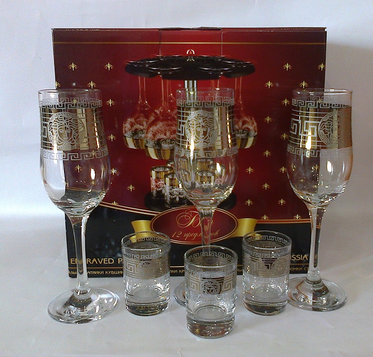Набор б/с 13 предметов бокал/стопка 160/22 Версаль.Материал: Стекло, деревоОбработка: Золотое напыление, гравировкаОписание:Бокал: высота - 205 мм; объем - 200 мл.Стопка: высота - 68 мм; объем - 50 мл.(1)