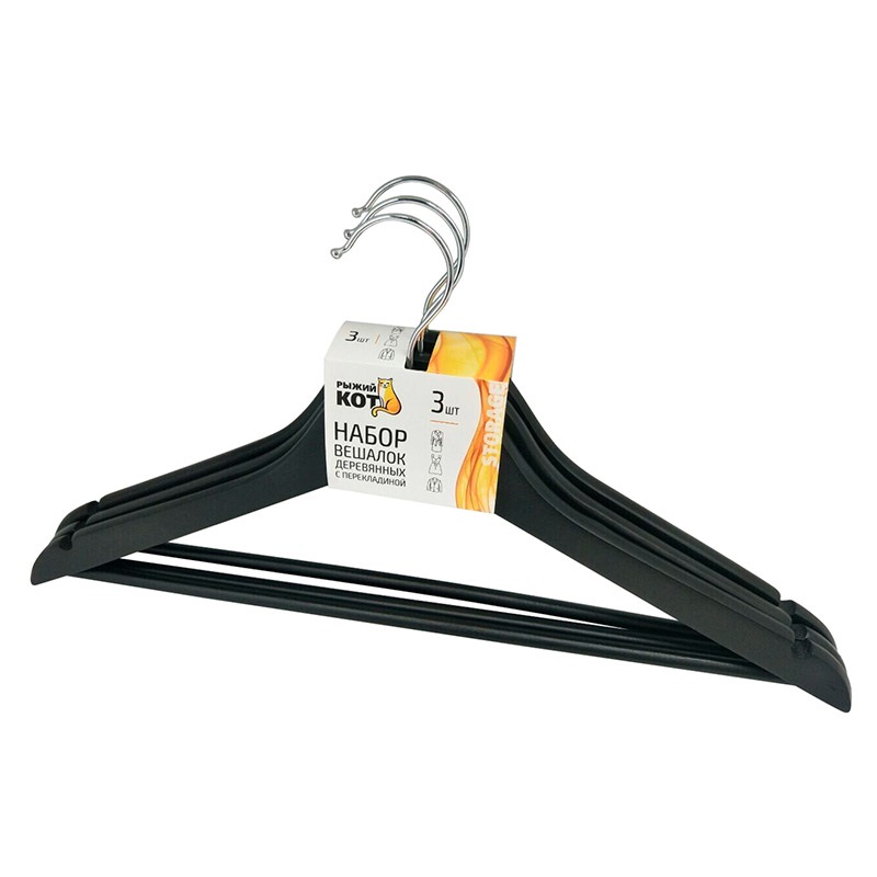 Набор вешалок деревянных с перекладиной 3шт,цвет черный.Размер 45*23*1,2см.Лакированное дерево,металл (32)