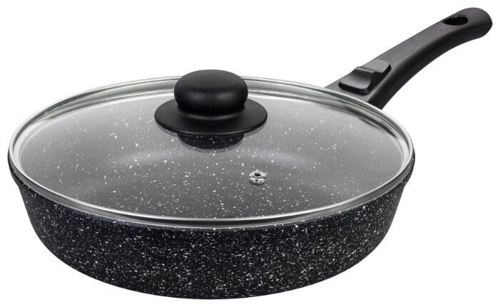 Сковорода 280мм антипригар с крышкой, пласт. ручка с2854аг Гранит.Толщина дна 6мм,толщина стенок 4мм,высота стенок 70мм (5)