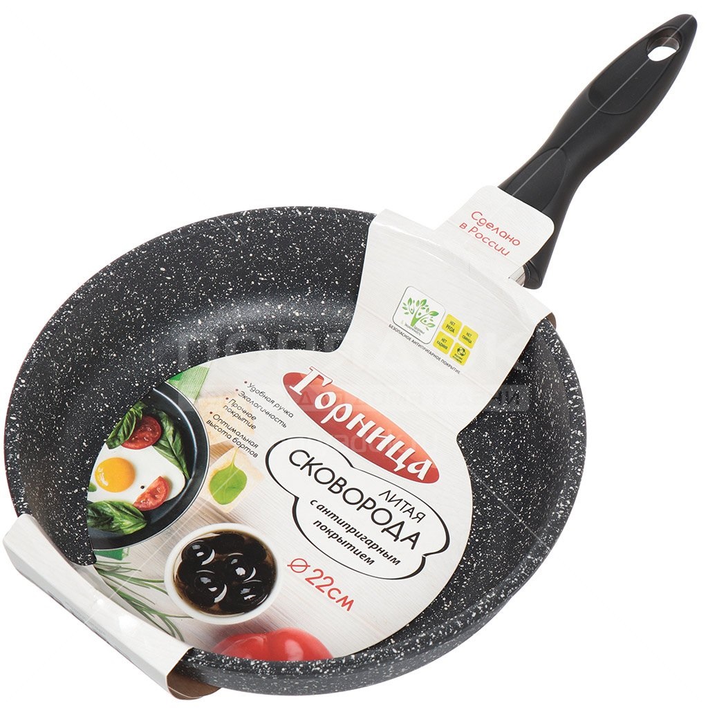 Сковорода 220мм антипригар Гранит без крышки пласт. ручка с2251аг Горница.Диаметр 22см,толщина дна 6мм,толщина стенок 3,8мм,высота стенок 5,5см.Допустимо использование металлических приборов (10)