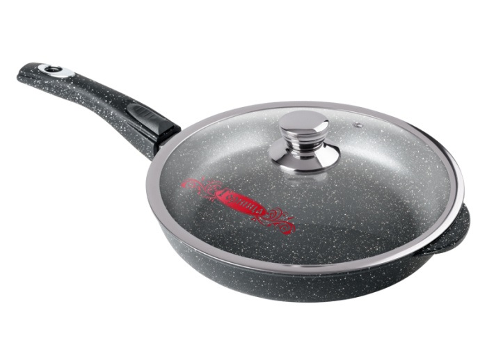 Сковорода 280/55мм Гранит съем/руч с крышкой (п/у) с2813аг.Толщина дна 4мм,стенок 3мм,высота 5,5см (5)