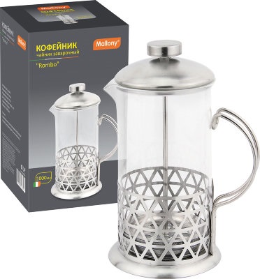 Кофе-пресс/чайник заварочный серия Rombo,тм Mallony.Обьем 350мл.Элегантный дизайн.Жаропрочное стекло.Нержавеющая сталь