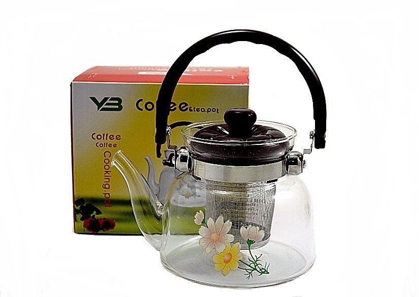 Чайник заварочный стеклянный RM-463/1800 1,8л с фильтрующей металлической сеткой, с коричневой плас. ручкой
