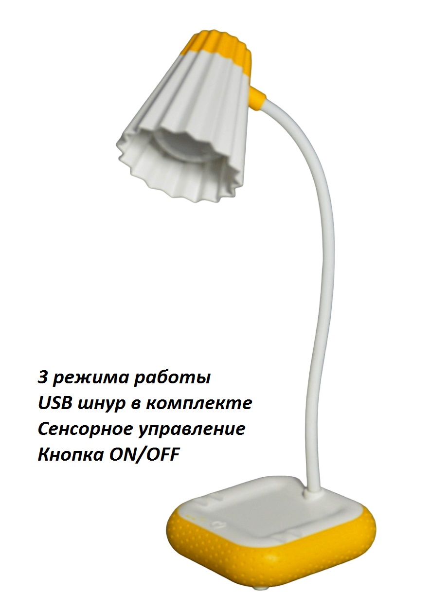 Лампа электрическая настольная LN-031 Белая.Мощность 3Вт.3 режима работы.Высота 35см,диаметр абажура 8см (60)