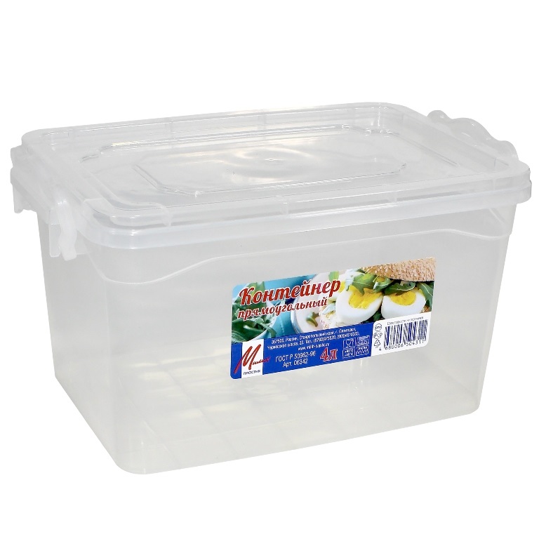 Контейнер 4л прямоугольный для пищевых продуктов 06342.Высота 14см,размер 25,5*16,5см (40)