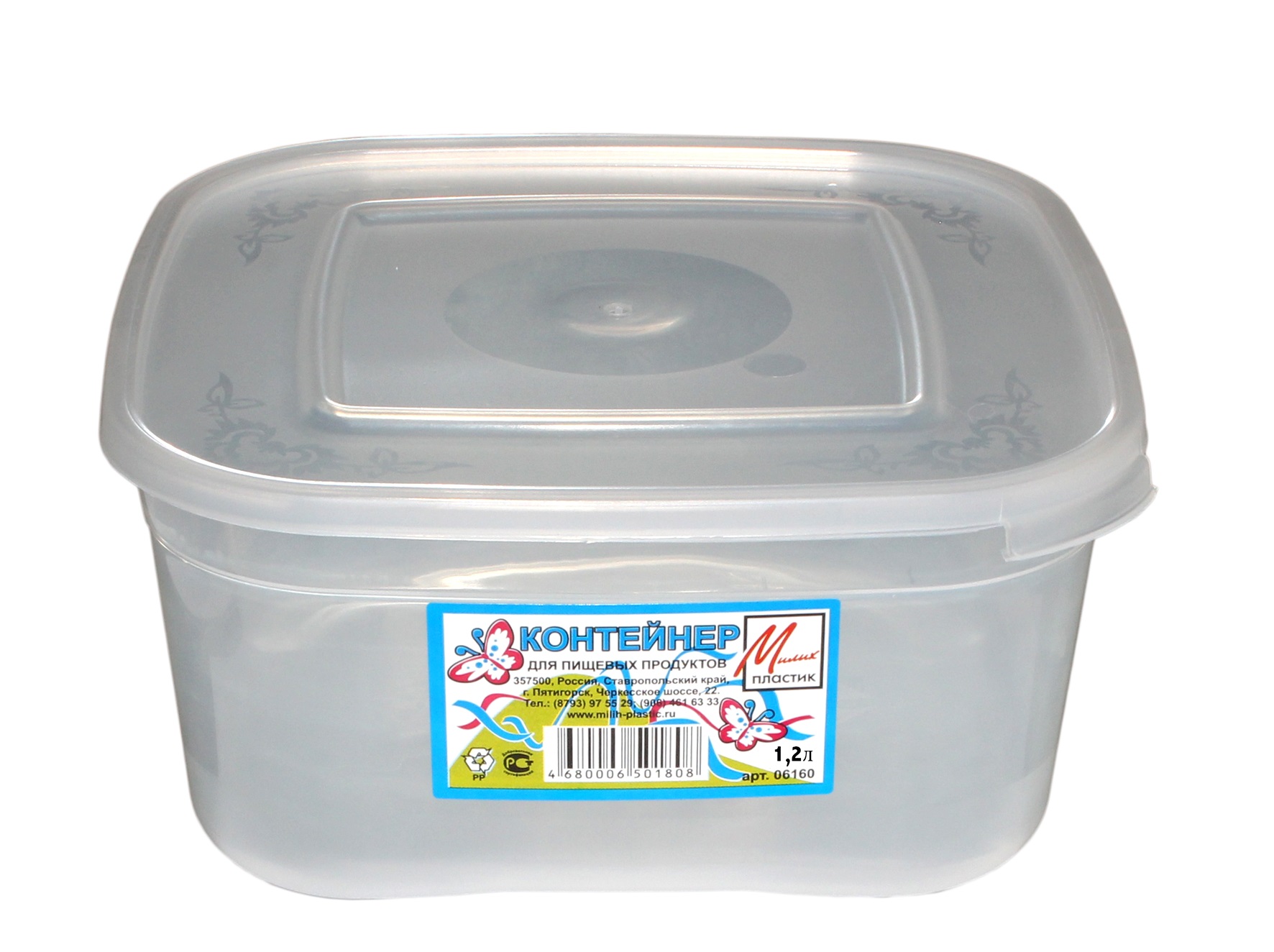 Контейнер пищевой 1,2л 06120.Высота 7,5см,размер 16*16см (50)
