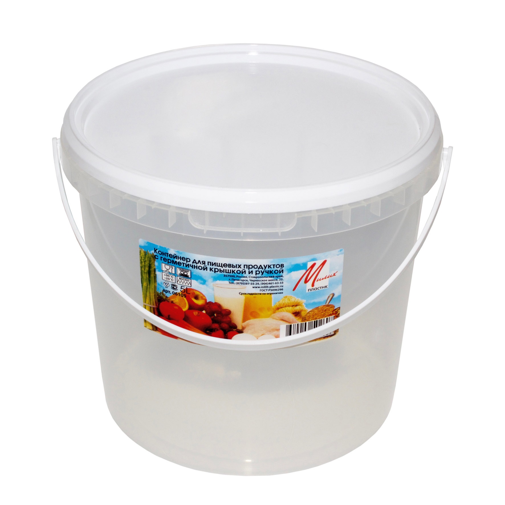 Контейнер пищевой 5л с герм.крышкой и ручкой 06105 (40).Высота 19,5см,диаметр 22,5см