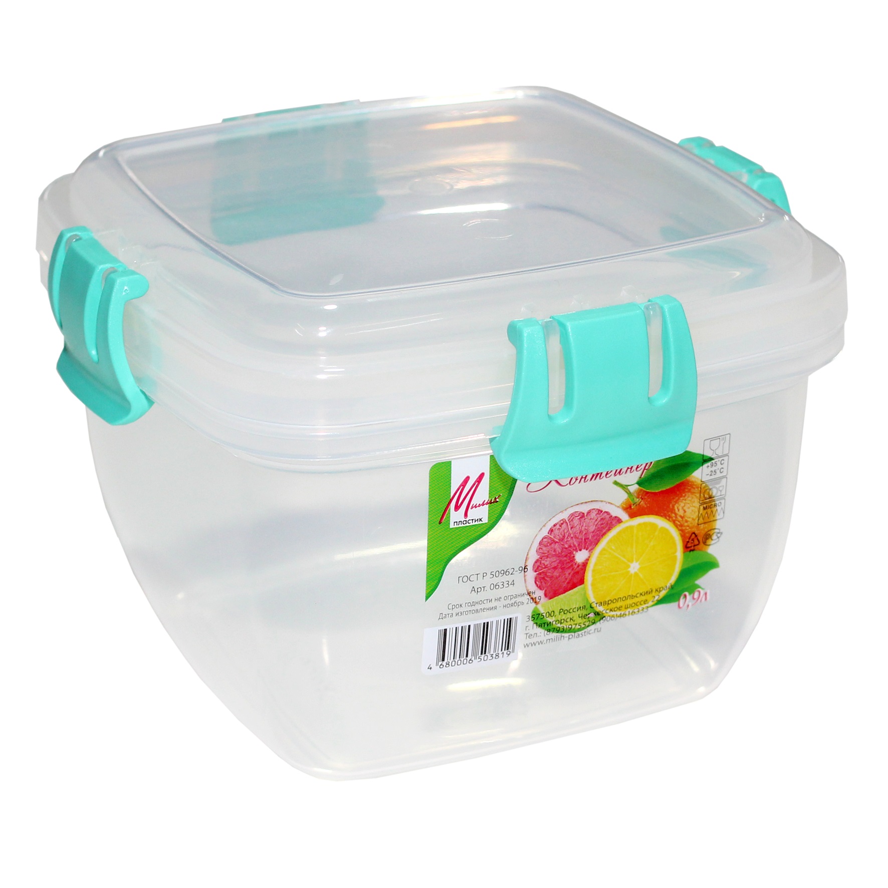 Контейнер 0,9л герметичный 06334.Высота 10см,размер 14*14см.В ассортименте (20)