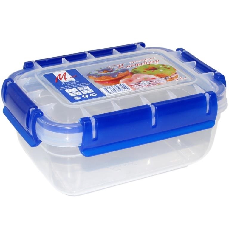 Контейнер герметичный 06331.Объем 0,8л.Высота 7,6см,размер 16*11,5см (25)
