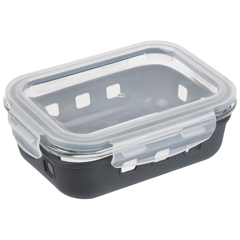 Контейнер MASSIMO 600мл из жаропрочного стекла с крышкой с защёлками в силиконовой подставке (12)