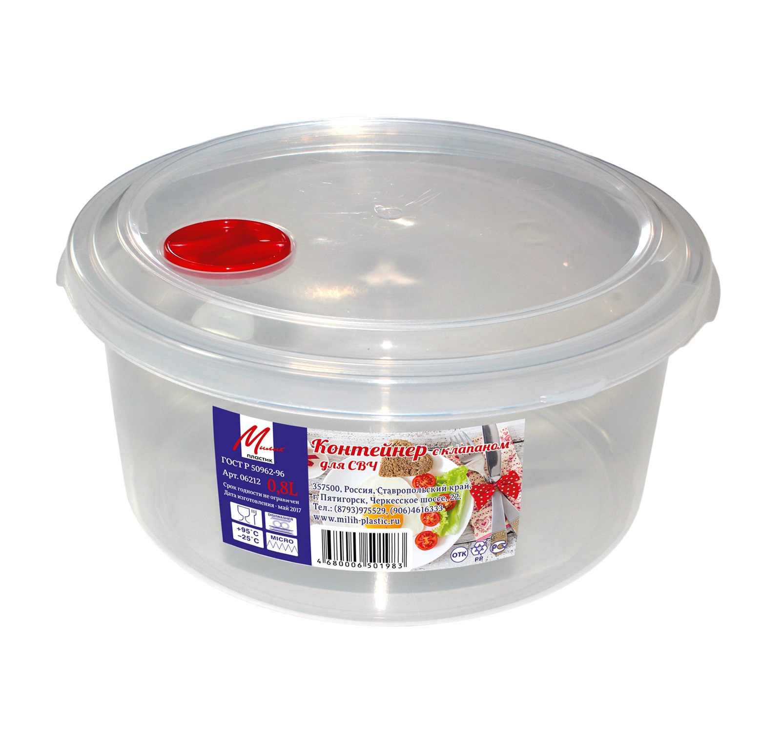 Контейнер для пищ.продуктов с клап. для СВЧ 0,8л,арт. 06208 (40)