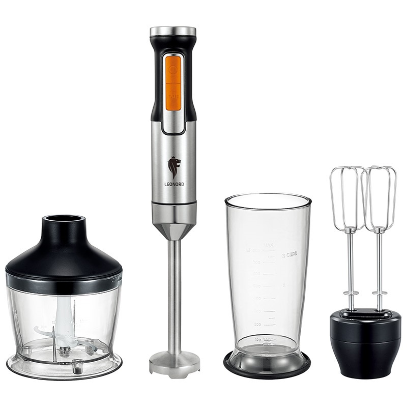 Мощность 800Вт.2 скорости.Турбо режим.Регулировка скорости.Насадка блендер и ножи из нержавеющей стали.Измельчитель 500мл.Двойной венчик.Стакан для смешивания 800мл (6)