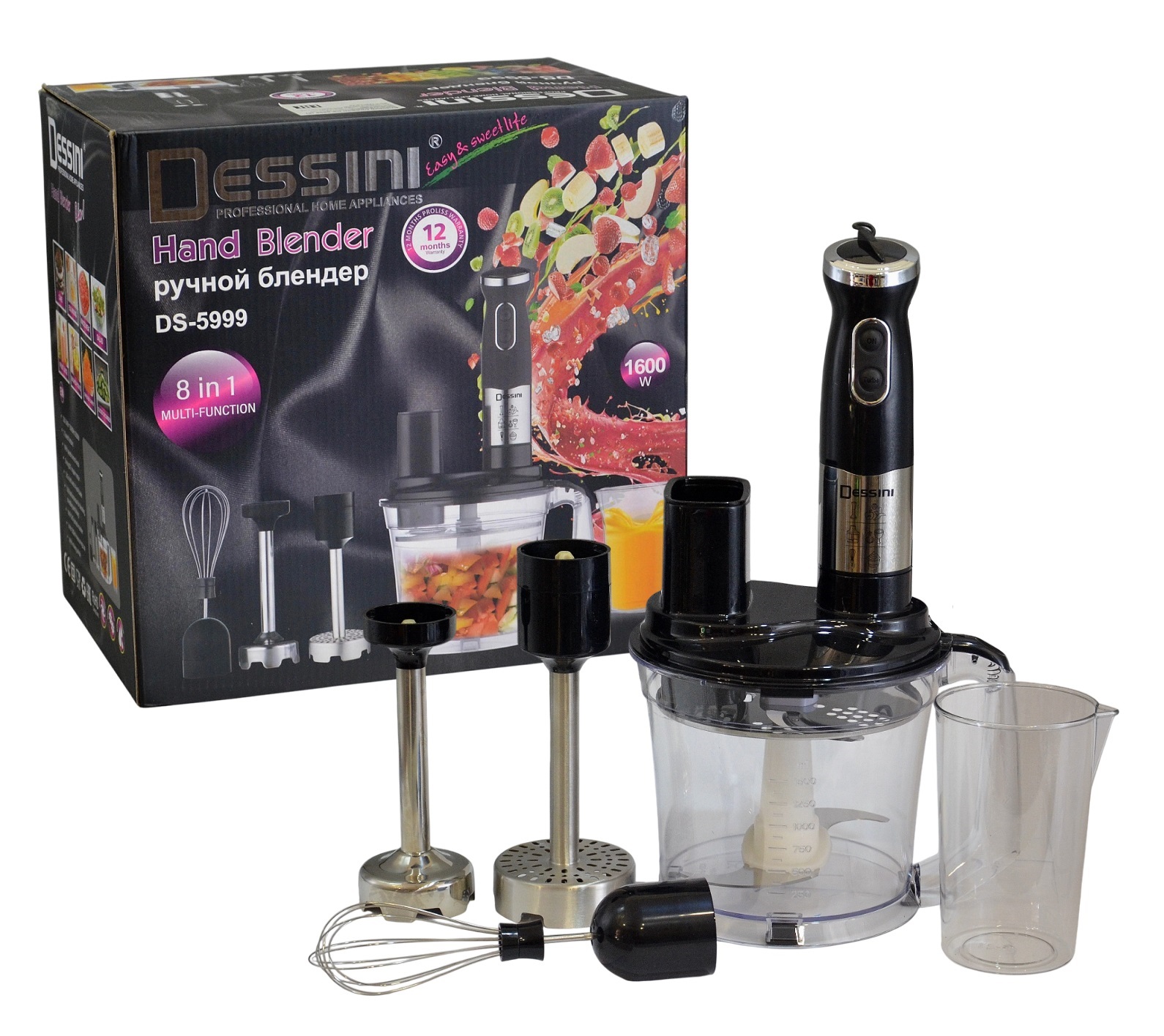 Мощность 1400Вт.2 скорости.Взбивание,измельчение,насадка-измельчитель,смузи,соус,терка.Чаша пластик 1,8л,стакан пластик 500мл (8)