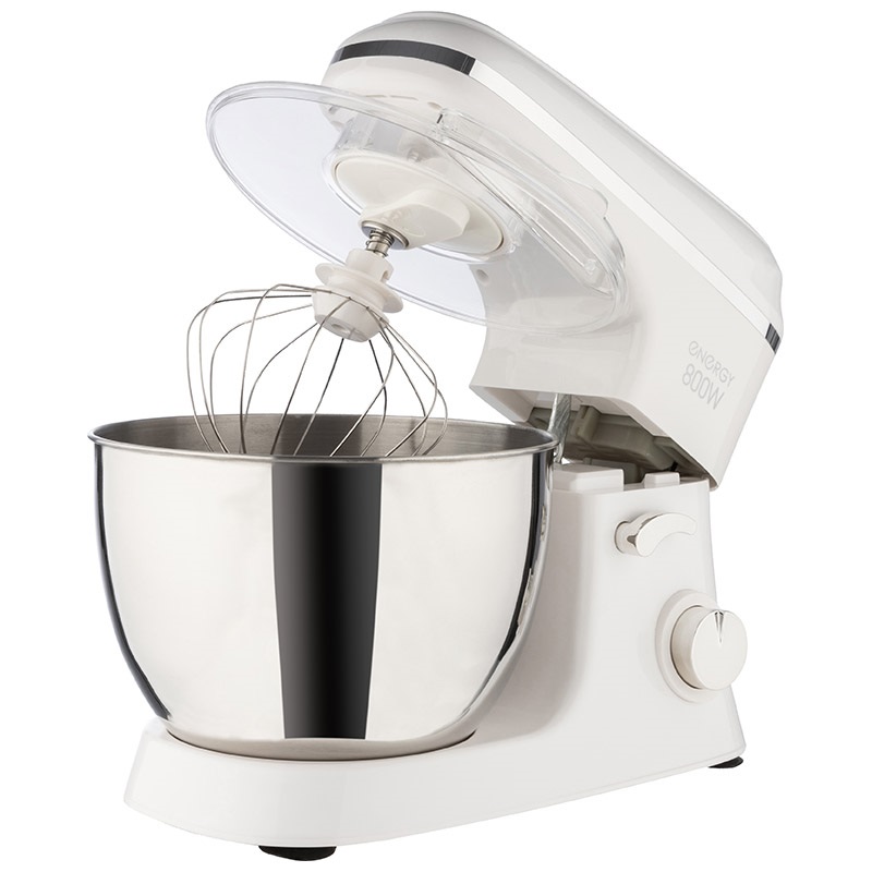 Мощность 800Вт.5 скоростей.Объем 5л.Прозрачная защитная крышка с отверстием для добавления ингредиентов.Насадки в комплекте венчик,насадка для теста,насадка для смешивания.Длина шнура 1м (4)
