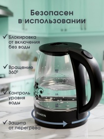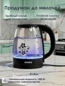 Чайник электрический ROXEN RX-7020 Black 1,8л.Мощность 1500Вт.Корпус из термостойкого стекла (12)